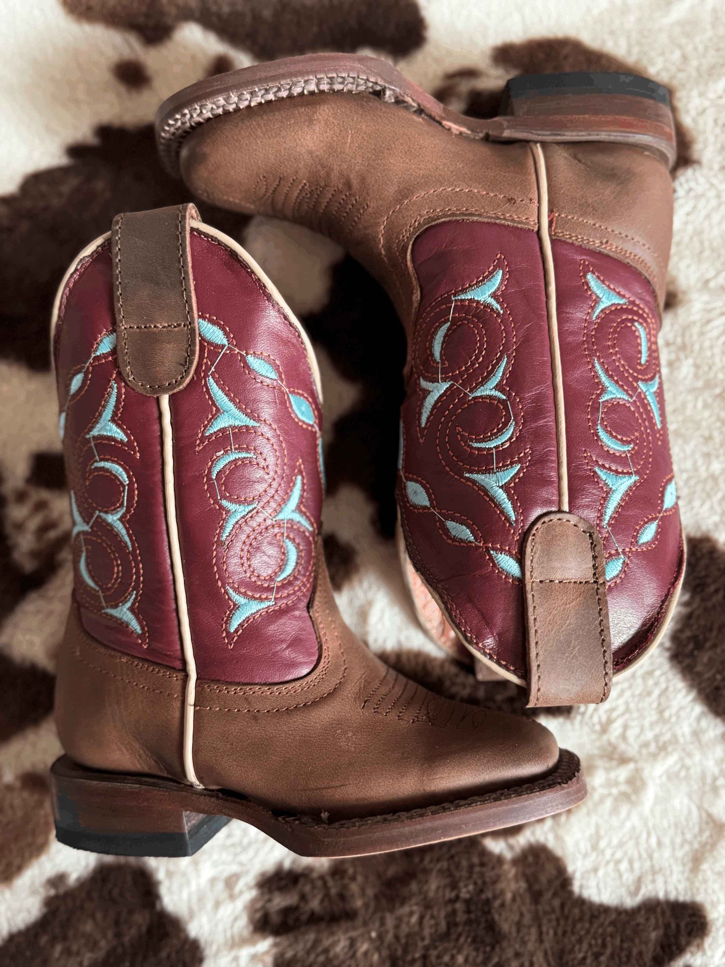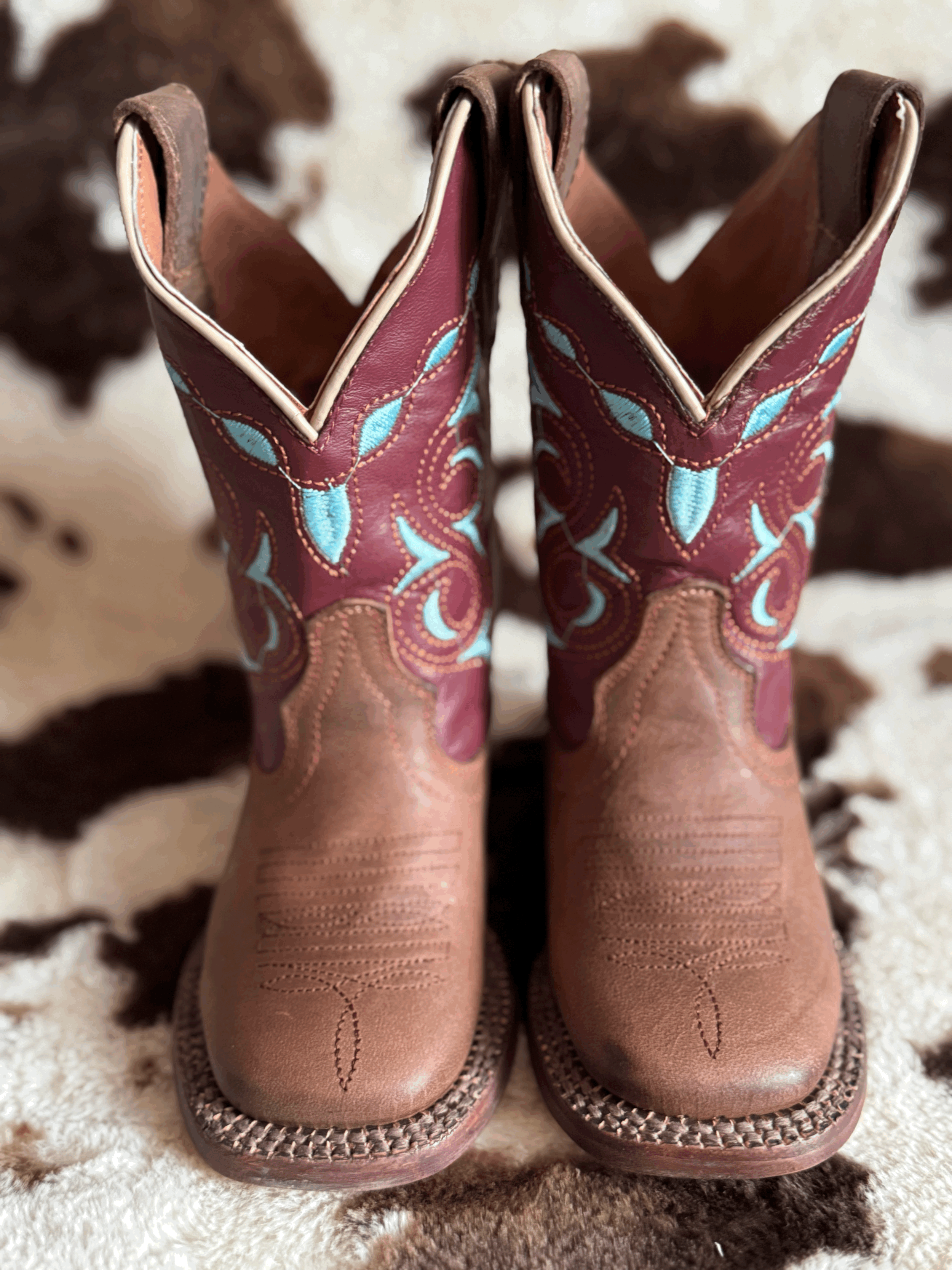 Honey brown with tan top kids’ western boots offer a stylish and practical choice for young cowboys and cowgirls. The warm honey brown leather provides a classic look that pairs well with a variety of outfits, while the tan top adds a subtle contrast for visual interest. These boots often feature traditional western details such as stitching patterns, pointed toes, and sturdy heels designed for comfort and durability. Ideal for both everyday wear and special occasions, they combine functionality with a timeless western appeal that children will enjoy wearing on any adventure.